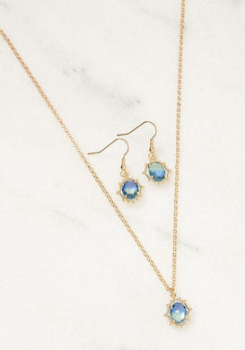 Vintage Sun Stone Necklace Earring Set