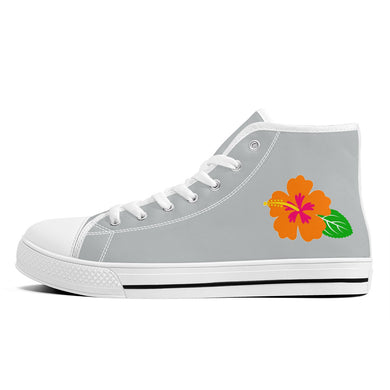 Ti Amo I love you - Exclusive Brand - Grayish Blue - Hawaiian Flower - High-Top Canvas Shoes - White Soles