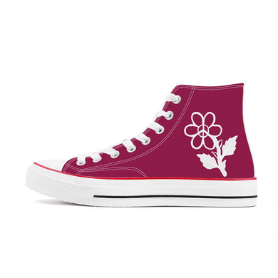 Ti Amo I love you - Exclusive Brand - Berry - White Daisy - High Top Canvas Shoes - White Soles