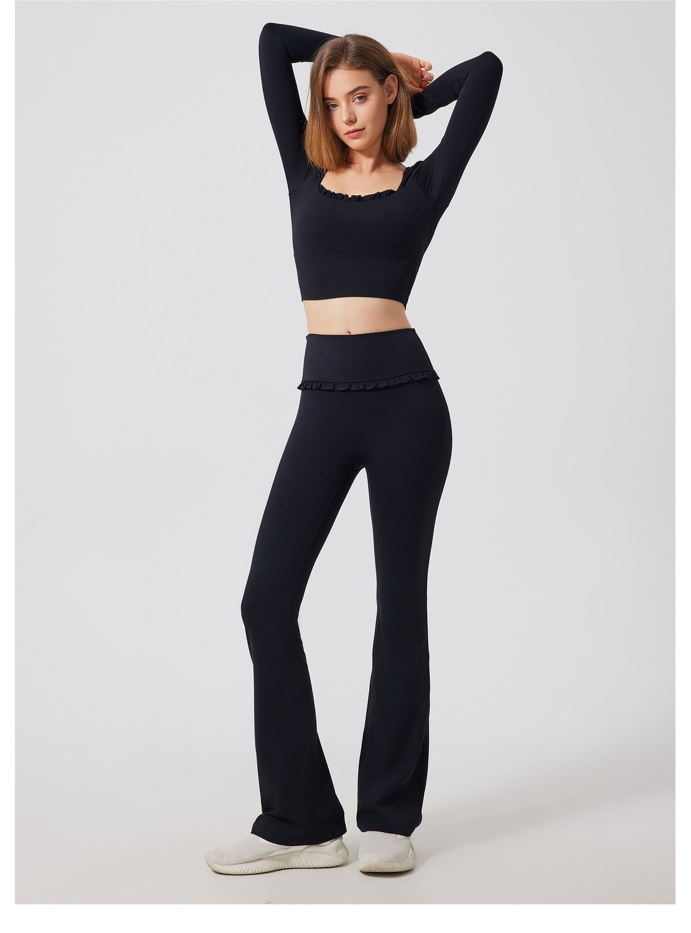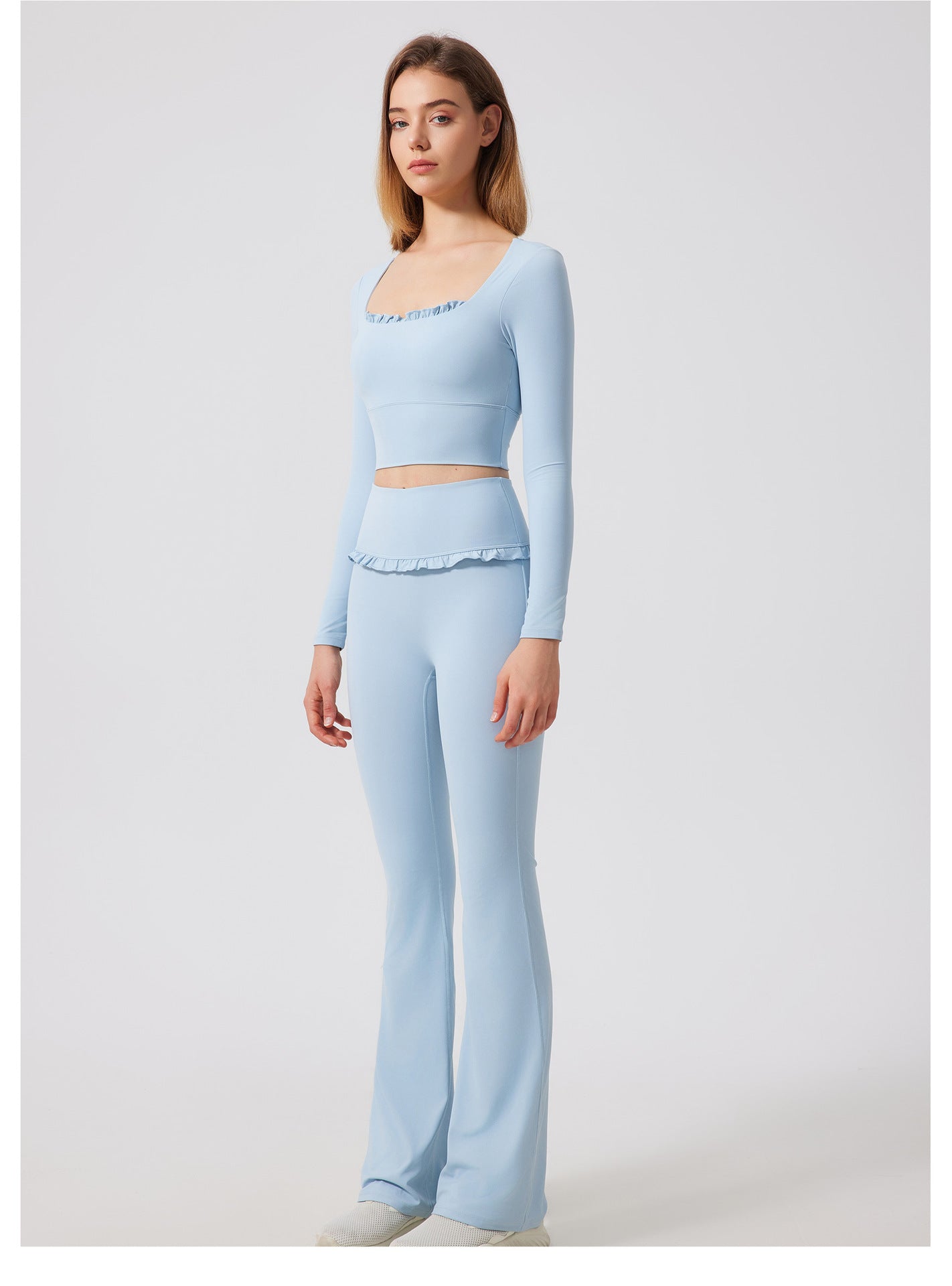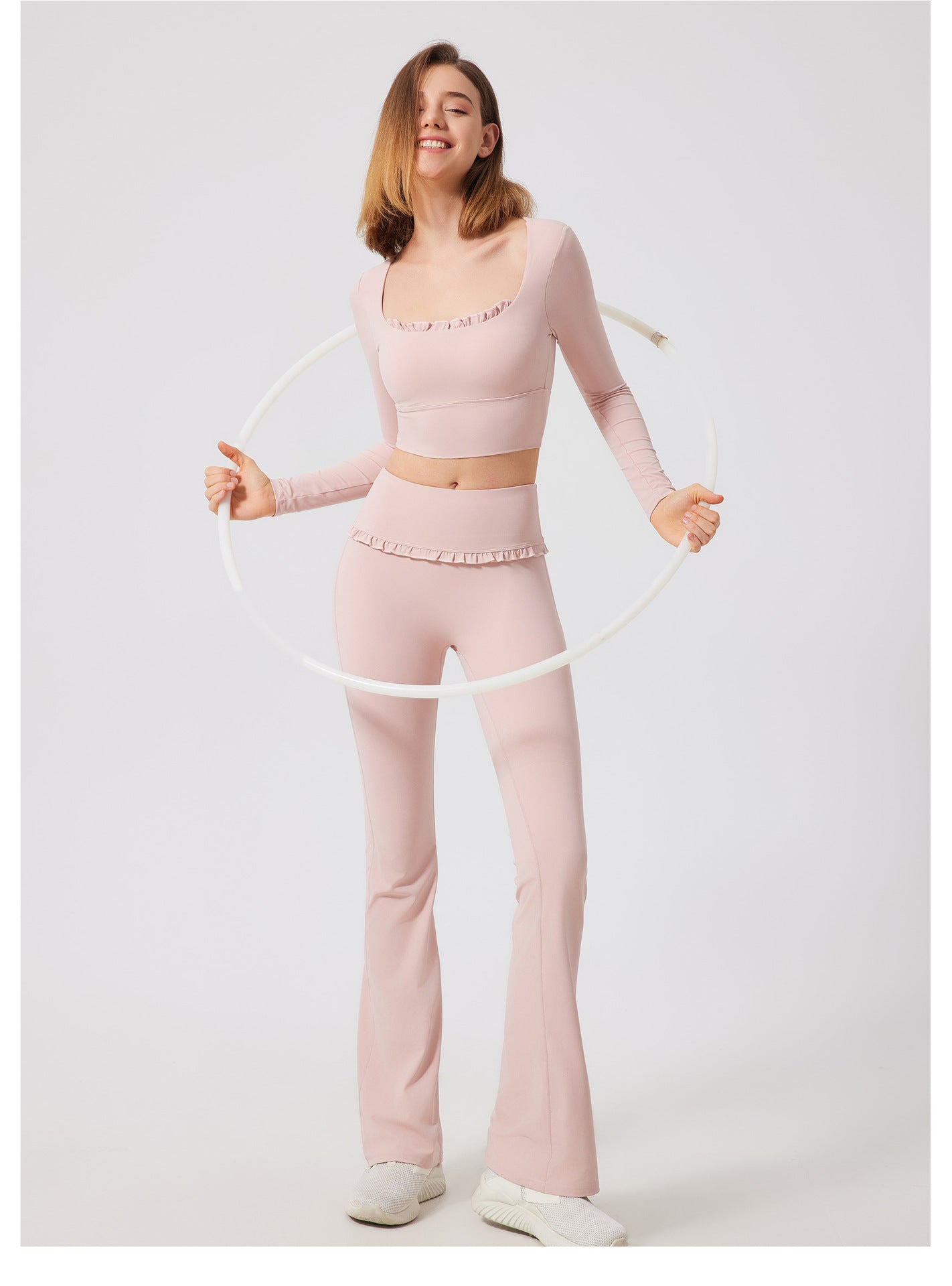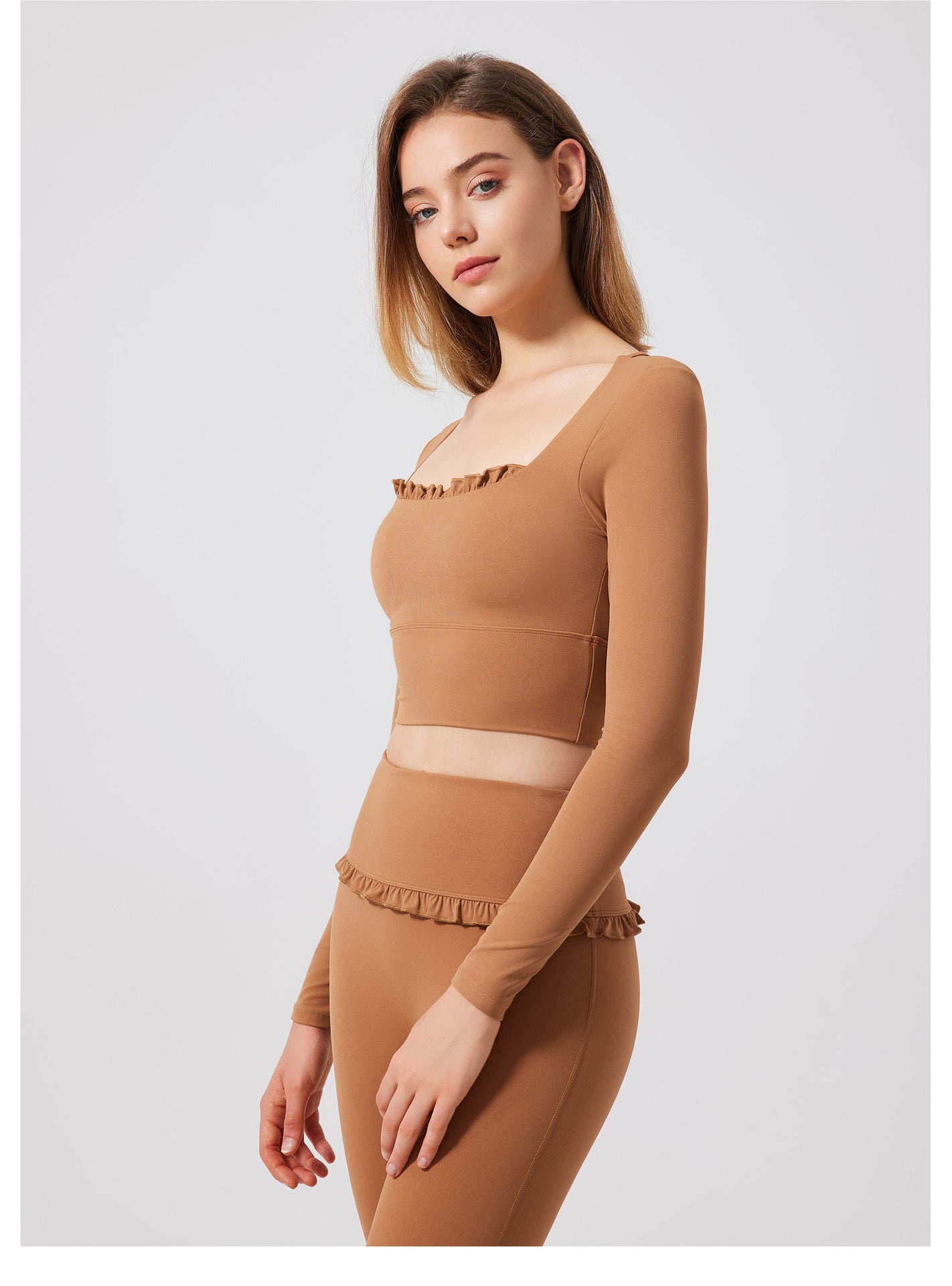 Autumn Winter Nude Feel Lace Yoga Clothes Long Sleeve Semi Fixed Cup Running Slim Sports Bra Breathable Workout Clothes Top