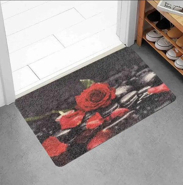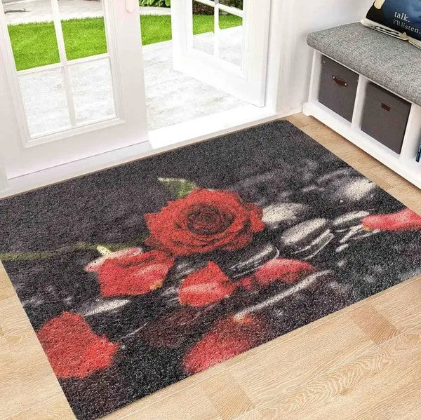 Black Red Roses Floral Non-Slip Durable Absorbent Welcome Door Mat