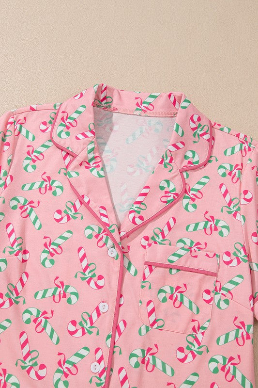 These pajamas feature a playful Christmas candy cane print that will bring joy to your bedtime routine. The knot detail adds a unique twist to the classic pajama style.