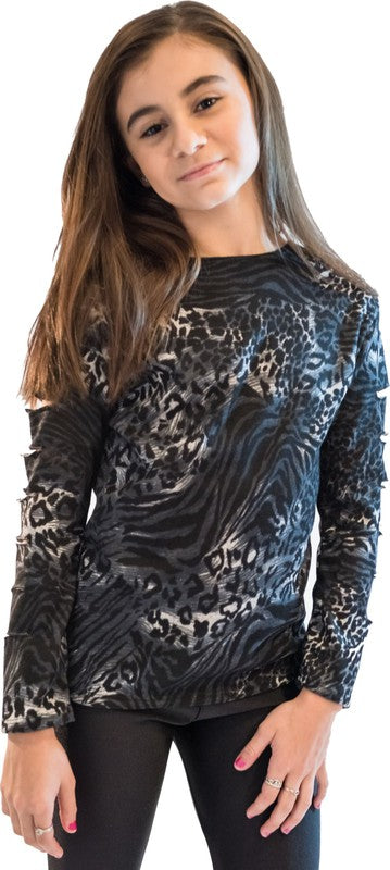 This cute little Long sleeve top features a soft material and cuts along the sleeve to give it that extra touch