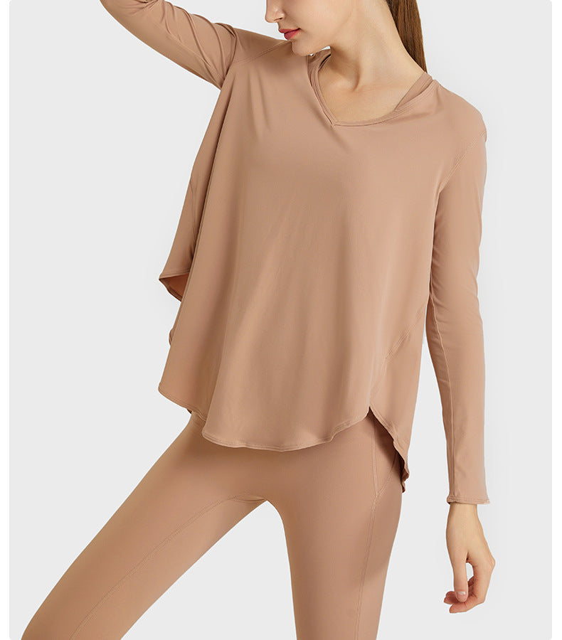 Light Thin Loose Moisture Wicking Yoga Workout Top Slimming Belly Covering Irregular Asymmetric Swing Circumference Quick Drying Long Sleeve