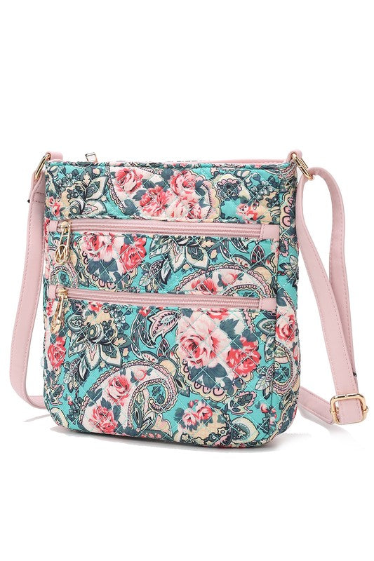 MKF Collection Lainey Quilted Cotton Botanical Pattern Women's Crossbody Bag by Mia K - Stylish and Functional Fashion Handbag for Women with Adjustable Strap.