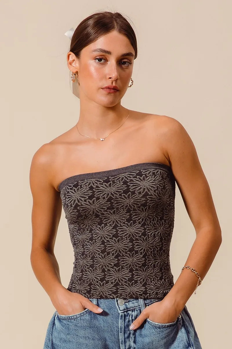 This stylish strapless cami tank features an eye-catching geometric print pattern that adds visual interest to any outfit. Made from stretchy, breathable fabric that provides comfort and flexibility throughout the day. The bandeau-style design offers a flattering fit that accentuates the silhouette while remaining versatile enough to pair with high-waisted jeans, skirts, or layer under blazers. The cropped length and seamless construction make it perfect for creating fashion, fashion-forward looks. The intricate pattern combines dark base tones with contrasting geometric motifs, making it suitable for both casual and dressy occasions.