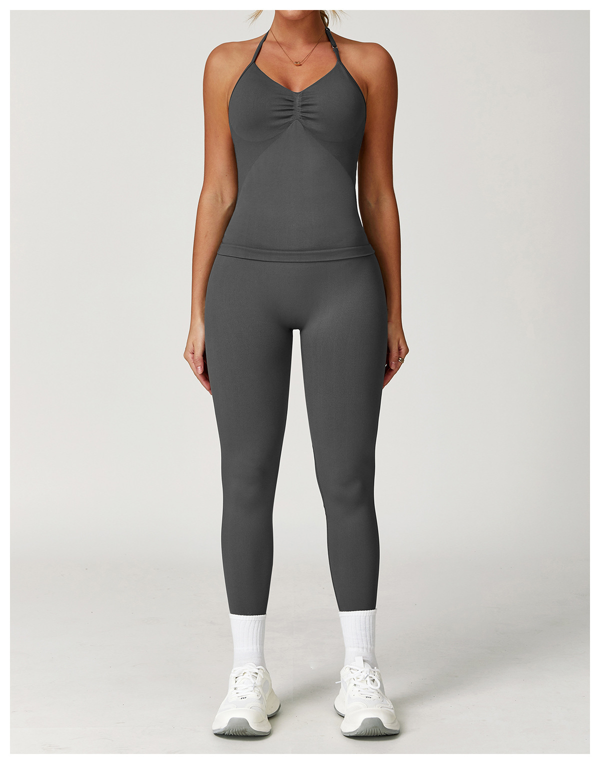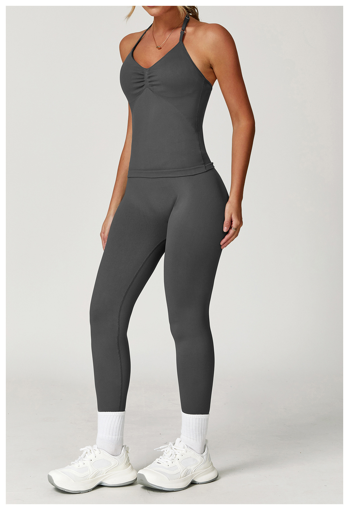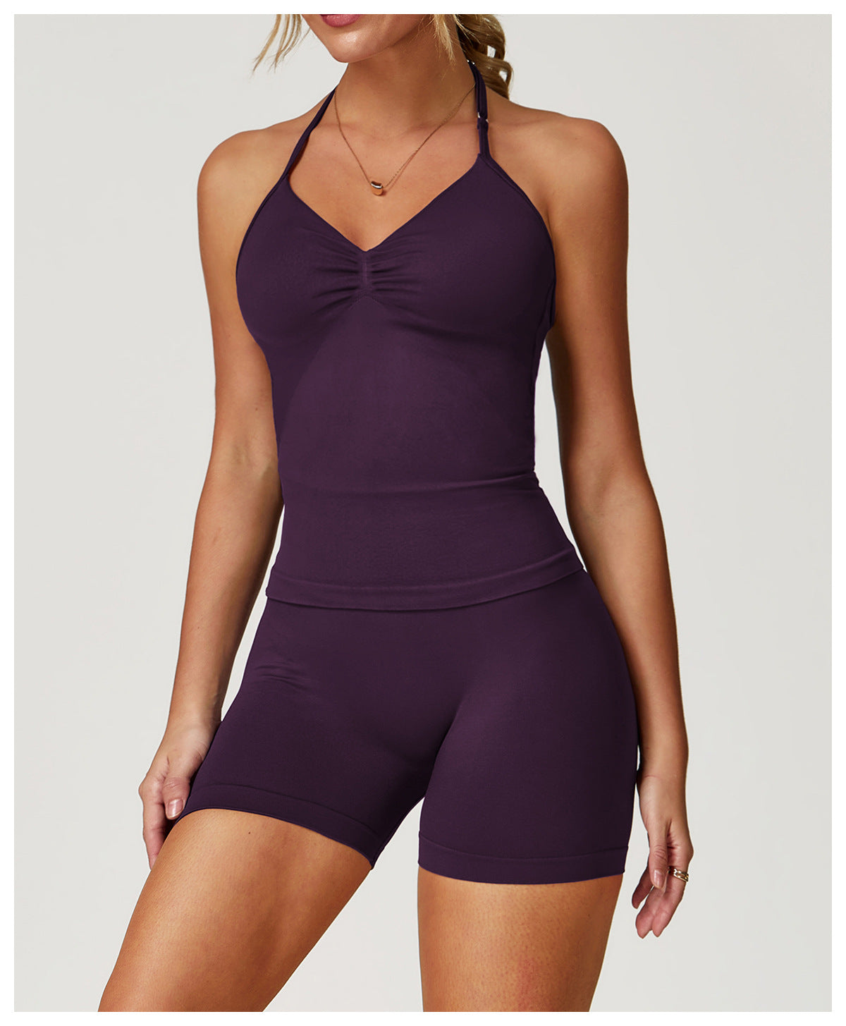 Sollinarry Seamless Yoga Vest Tight Breathable Pleated Sports Vest Casual Running Fitness Top