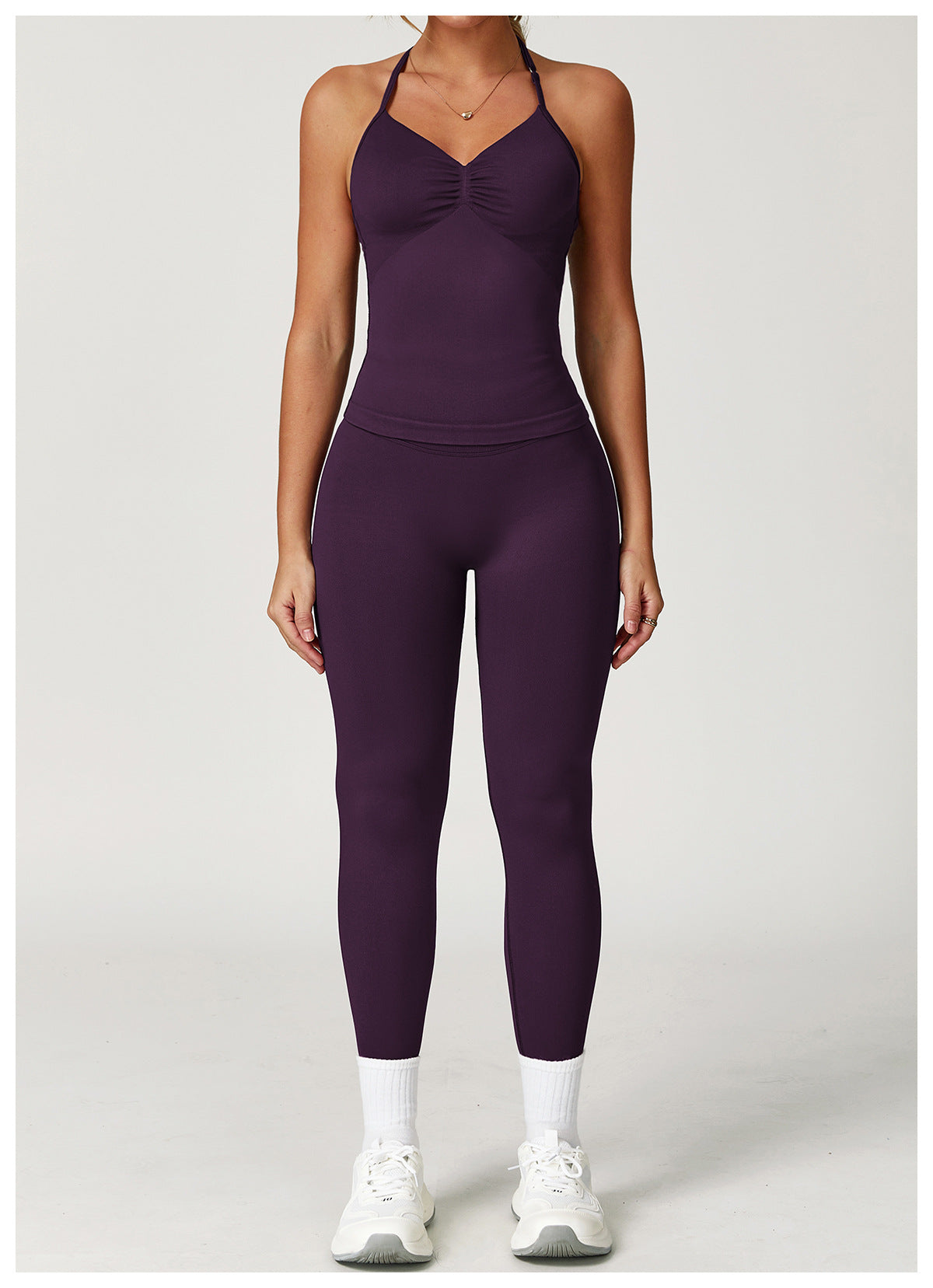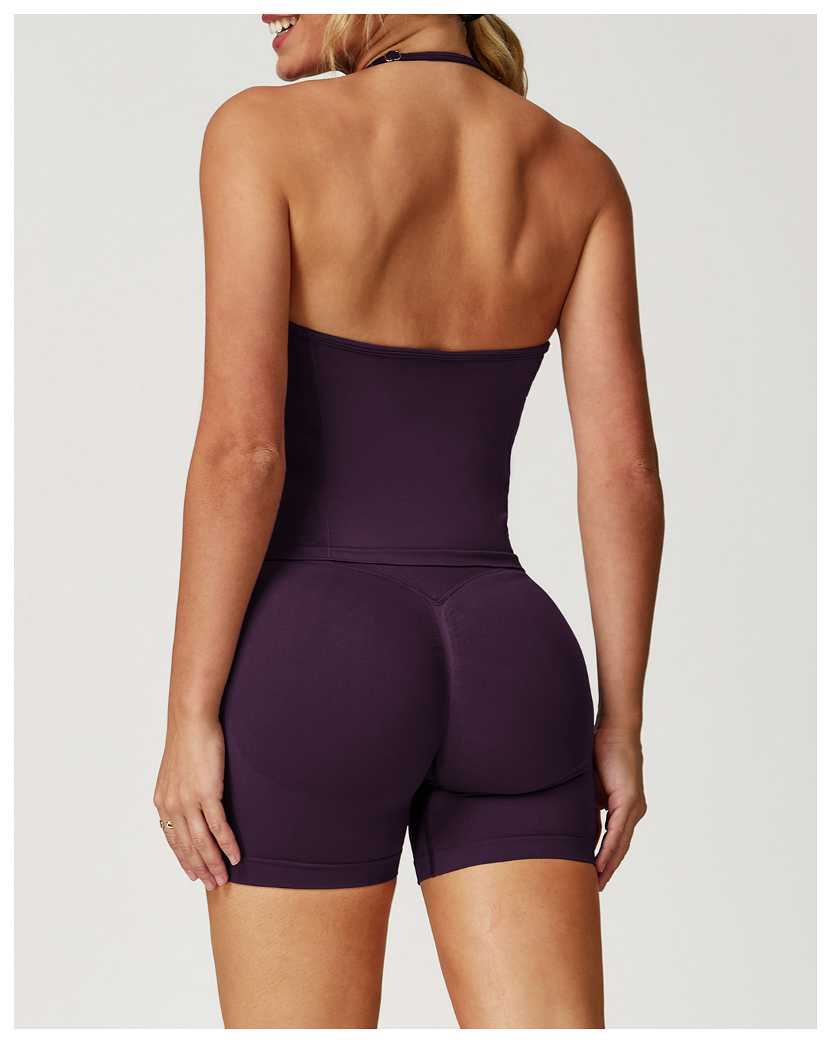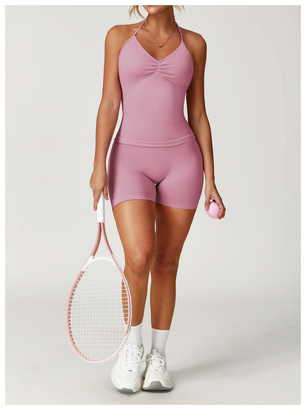Sollinarry Seamless Yoga Vest Tight Breathable Pleated Sports Vest Casual Running Fitness Top
