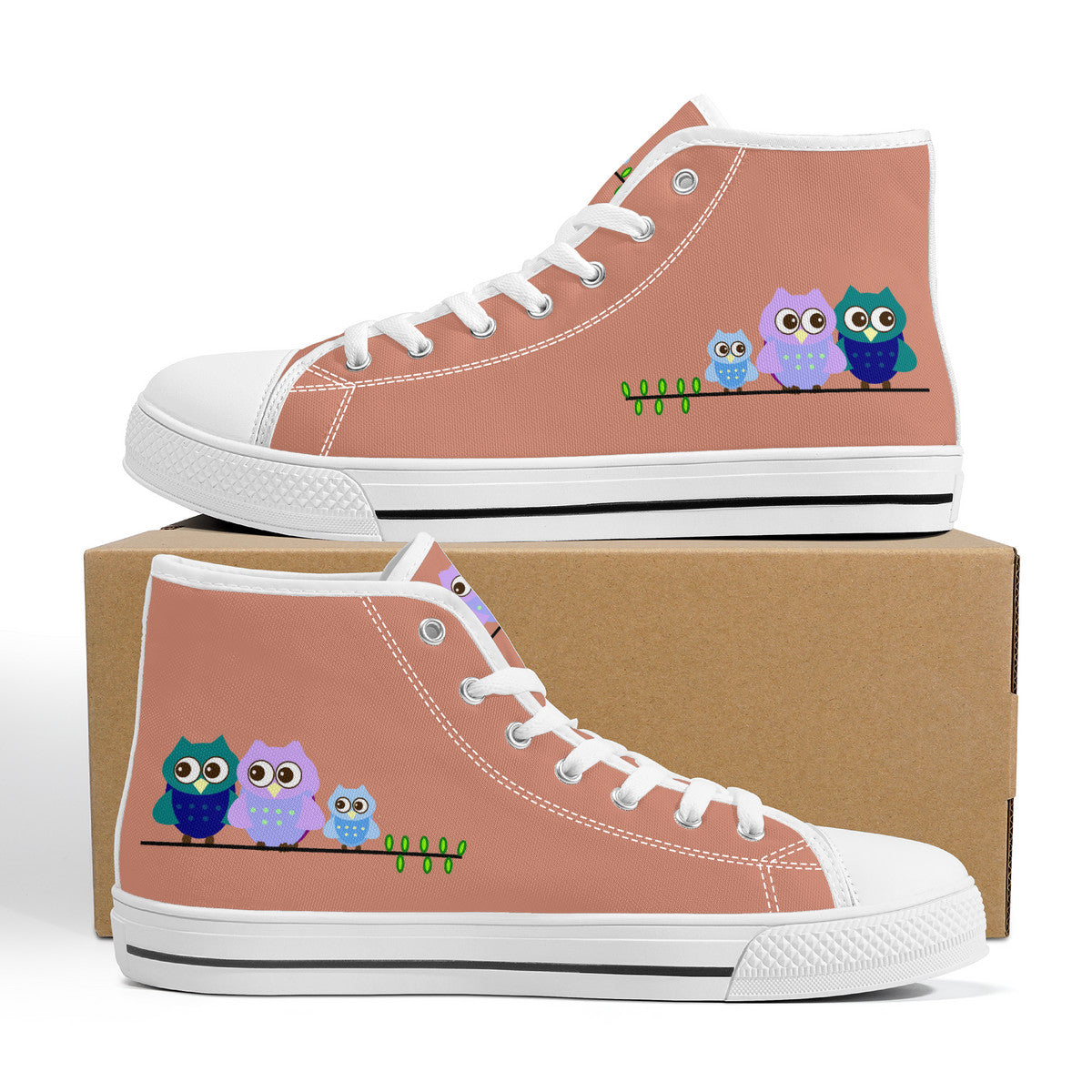 • Load image into Gallery viewer, Ti Amo I love you  - Exclusive Brand - Pale Copper - 3 Owls - High-Top Canvas Shoes - White - Ti Amo I love you