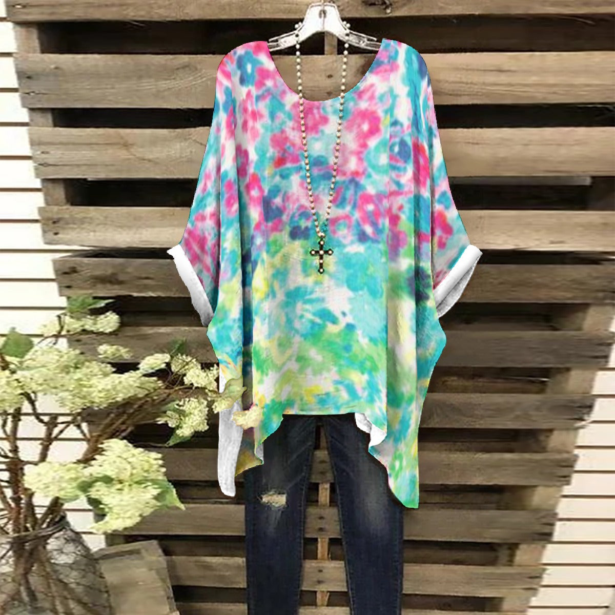 A fashionable shirt with an bat sleeve design and irregular crosses on the hem; Nice fabric can provide you with all-day ease and comfort