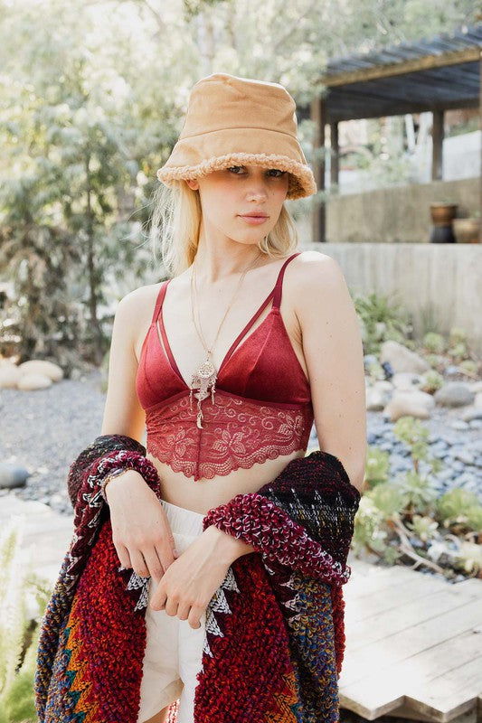 Velvet longline Lace Bralette