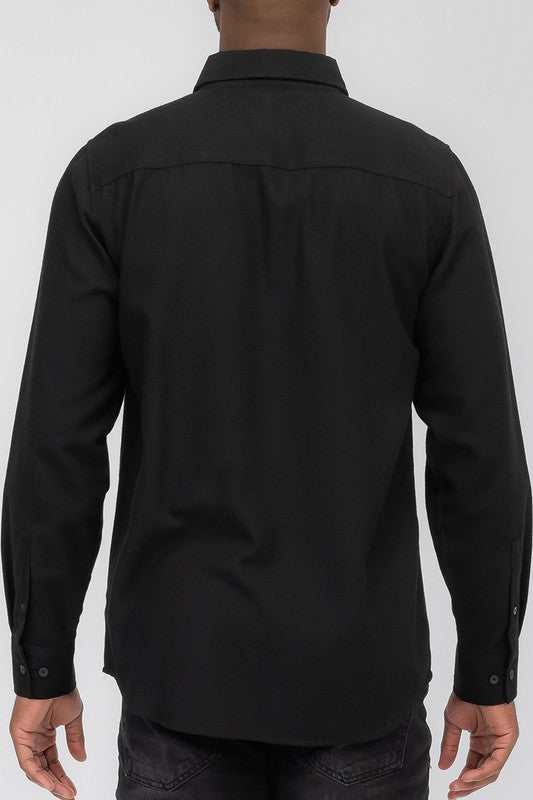Solid Flannel Long SleeveDual Button Down ShirtChest PocketCollarRegular Fit60 Cotton 40 Polyester