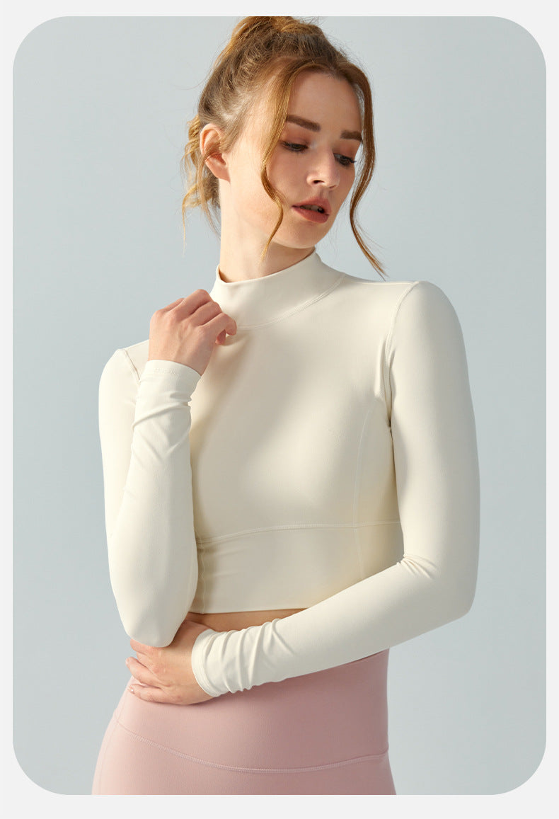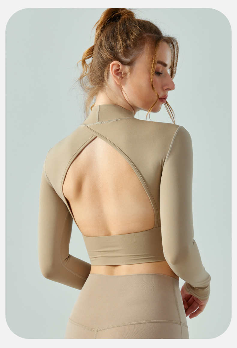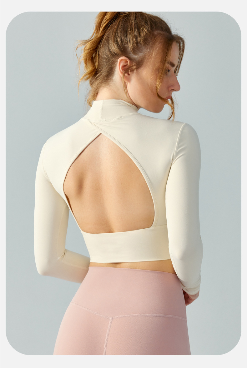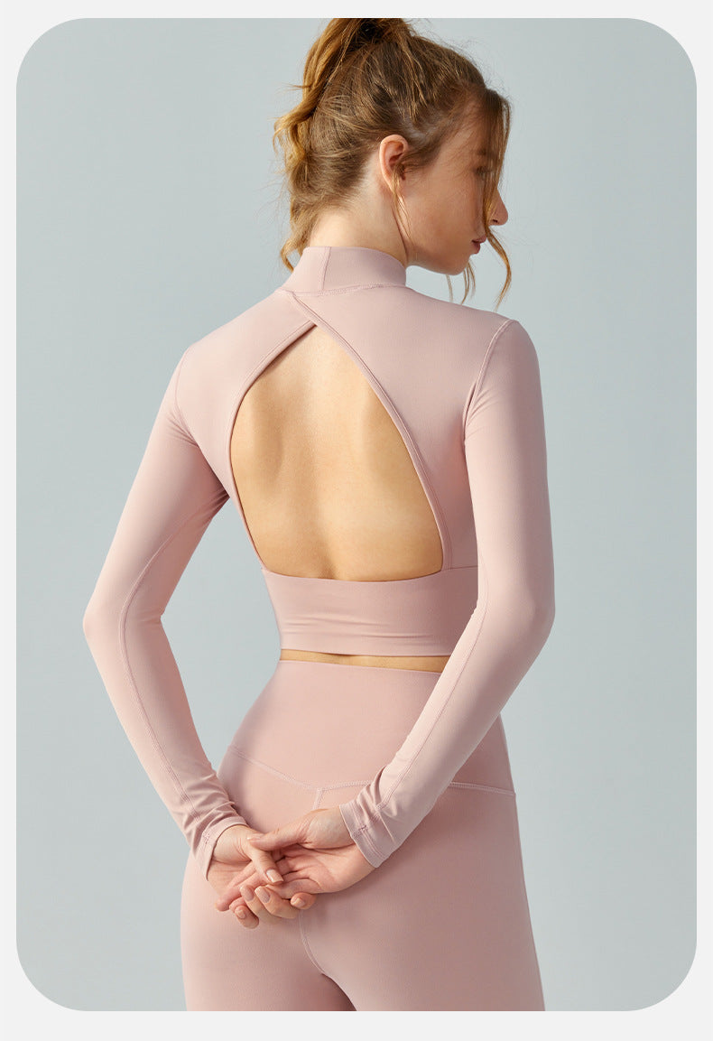 Workout Clothes Long Sleeve with Chest Pad Autumn Winter Stand Collar Sports Top Waist Slimming Hollow Out Cutout Beauty Back Long Sleeve Yoga Wear Women